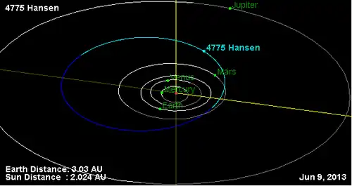 (4775) Ганзен (нем. Hansen) — медленно вращающийся астероид, относящийся к группе астероидов пересекающих орбиту Марса, который был открыт 3 октября 1927 года американским астрономом Максом Вольфом в обсерватория Хайдельберг и назван в честь немецкого астронома XVIII века Петера Ганзена[2].