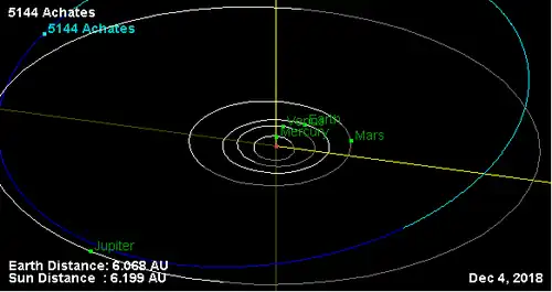 (5144) Ахат (лат. Achates, др.-греч. Ἀχάτης) — типичный троянский астероид Юпитера, движущийся в точке Лагранжа L5, в 60° позади планеты. Астероид был открыт 2 декабря 1991 года американским астрономом Кэролин Шумейкер в Паломарской обсерватории и назван в честь Ахата, одного из героев Троянской войны[1].