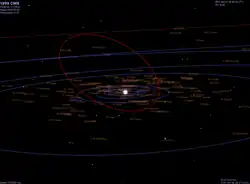 | Аргумент перигелия (ω) | 262,16720471793 ± 2,6517E−5 °[1] |