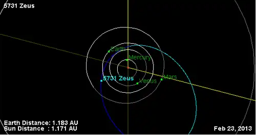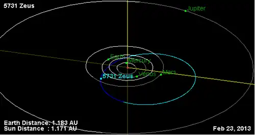 (5731) Зевс (др.-греч. Ζεύς) — околоземный астероид из группы аполлонов, который характеризуется крайне вытянутой орбитой, из-за чего в процессе своего движения вокруг Солнца он пересекает не только орбиту Земли, но и Марса, уходя далеко за его орбиту. Он был открыт 4 ноября 1988 года американской женщиной-астрономом Кэролин Шумейкер в Паломарской обсерватории и назван в честь бога грома и молний Зевса, верховного божества в древнегреческой мифологии[2].