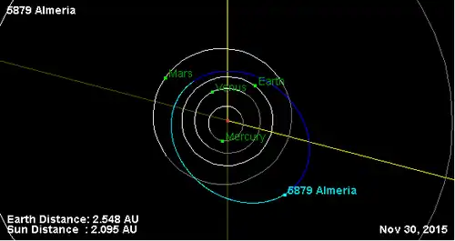 - Орбита астероида Альмерия и его положение в Солнечной системе