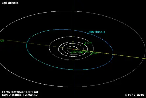 (655) Брисеида (нем. Briseïs) — астероид главного пояса, который был открыт 4 ноября 1907 года американским астрономом Джоэлом Меткалфом в Тонтонской обсерватории и назван в честь Брисеиды, героини древнегреческой мифологии, одной из центральных фигур «Илиады»[1].