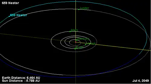 (659) Нестор (др.-греч. Νέστωρ) — крупный троянский астероид Юпитера, двигающийся в точке Лагранжа L4, в 60° впереди планеты. Астероид открыл 23 марта 1908 года немецкий астроном Макс Вольф в обсерватории Хайдельберг-Кёнигштуль в Германии и назвал в честь Нестора, согласно древнегреческой мифологии царя города Пилоса[2].