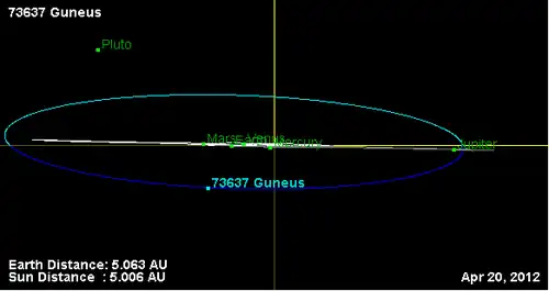 - Орбита астероида Гуней и его положение в Солнечной системе