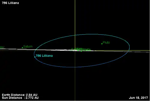 - Орбита астероида Лиллиана и его положение в Солнечной системе