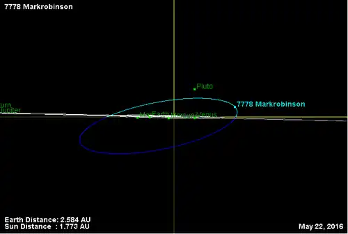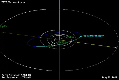 - Орбита астероида Маркробинсон и его положение в Солнечной системе