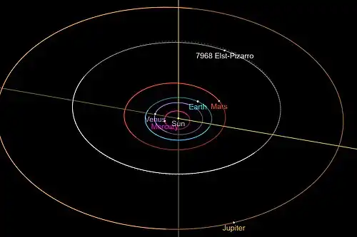 - Орбита астероида Эльст — Писарро и его положение в Солнечной системе