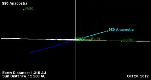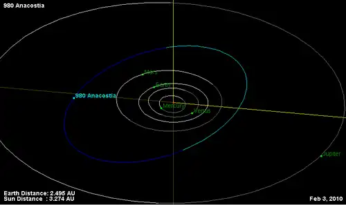 - Орбита астероида Анакостия и его положение в Солнечной системе