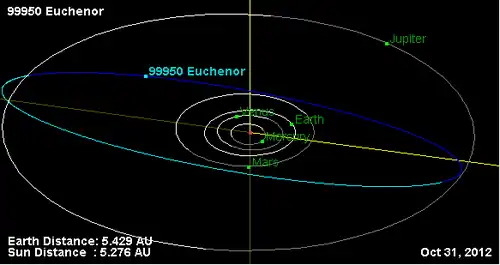 - Орбита астероида Евхенор и его положение в Солнечной системе