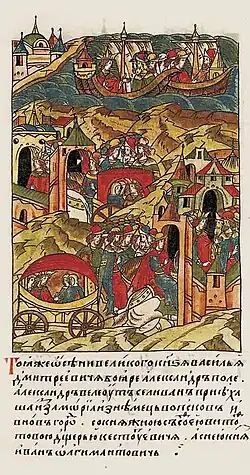 - ↑ Сост. Д.и н. Ю.В. Селезнёв. Русско-ордынские конфликты XIII-XV веков. Отв. ред. док.ист.наук А.В. Кузьмин. Рез. Д.и.н. В.Н. Глазьев, к.и.н. доц. О.В. Скобелкин. Изд. 2-е исправленное. М. Квадрига. 2014 г. Таблица № 74. стр. 108. ISBN 978-5-91791-135-9.