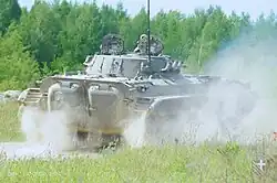 В бригаде также имеется небольшое количество боевых машин пехоты, таких как БМП-2, причем одна из них стоит на вооружении бригады[14].