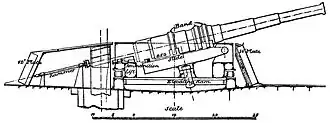 Нарезка ствола орудия производилась по смешанной системе. От зарядной каморы до участка в 6′2,2″ (1,89 м) от дульного среза нарезы шли с прогрессивной крутизной, у казённой части их шаг составлял один оборот на 130 калибров, а ближе к дульному срезу — один оборот на 30 калибров. Далее они нарезались с постоянным шагом один оборот на 30 калибров. В качестве запирающего механизма фирма-разработчик использовала поршневой затвор с обтюратором конструкции Вавассера. Обтюратор — плоская медная чашечка, прилегающая своим дном к плоскому фасу затвора, а закраинами к медному кольцу, вделанному в стены ствола. При производстве выстрела пороховые газы, вдавливая чашечку в фас поршневого затвора, расширяли её, чем и достигалась обтюрация. Единственным крупным недостатком подобной системы являлась чувствительность медного кольца к загрязнению. При образовании на нём нагара закраины чашечки уже недостаточно плотно прилегали к нему, в результате чего терялась герметичность, и пороховые газы начинали просачиваться, и обтрюраторы приходилось часто заменять.