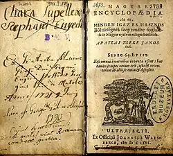 Форзац-страница первой энциклопедии на венгерском языке (Magyar encyclopaedia)