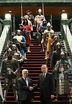 - ↑ France-Presse, Agence (12 января 2015). Abbas welcomed at Turkish presidential palace by Erdoğan – and 16 warriors. The Guardian (англ.). ISSN 0261-3077. Архивировано 18 июля 2016. Дата обращения: 24 апреля 2020.