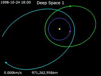 Анимация движения Deep Space 1 в период с 24 октября 1998 по 31 декабря 2003