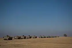 Израильский БТР на пути к границе с Газой во время операции «Нерушимая скала»