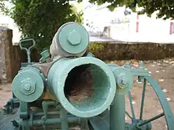 Ствол был в выполнен в форме дульнозарядного ружья с гидравлическими противооткатными цилиндрами по бокам; также был специальный привод, позволявший быстро приводить орудие в боевую готовность. Платформа была прямоугольной формы, ограничивала угол подъёма и поворота. Колёса добавлялись по желанию для лучшей транспортировки орудия. В 1916 году был разработан новый образец, который позволял вращать ствол на все 360° по горизонтали. Длина ствола достигала 410 мм и позволяла вести огонь под углом до 27°. Противооткатное устройство массой 90 кг гасило всю отдачу. Тем самым миномёт стал использоваться и как противотанковое орудие.