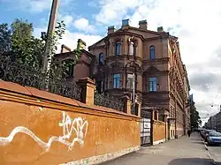 • Дом № 31 — шестиэтажный доходный дом М. А. Долгополова, построен в 19101911 годах по проекту архитектора В. И. Ван-дер-Гюхта[12]. До 1910 года на этом участке стояли деревянные постройки. В 1920-е годы в бывшем доме Долгополова жил известный ботаник Н. И. Кузнецов. В 1921 году в доме открыли курсы радистов (одни из первых в стране). С конца 1930 по январь 1931 года в этом доме, в квартире своего брата Е. Э. Мандельштама гостил Осип Эмильевич Мандельштам (В 1990 году была установлена мемориальная табличка). Здесь были написаны строки: