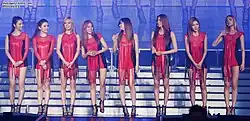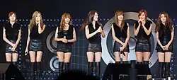 ![]() After School на пресс-конференции шоу «Библия красоты After School», январь 2014 года. Слева направо: Каын, И-Ён, Чона, Чжуён, Лиззи, Рэйна и Нана | |