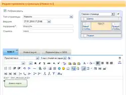 Все функции Amiro.CMS можно разбить на две условные категории: редактирование и разработка. В случае активации вкладки редактирования на любой странице, все доступные для этого элементы будут подсвечены, что позволит исправить заголовок текста, настроить форматирование, а также выполнить любые другие действия по редактированию сайта[2]. При редактировании возможно использование языка разметки BBCode[4].