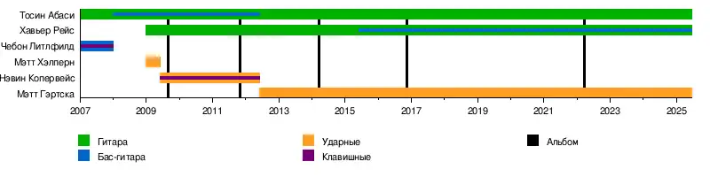- Тосин Абаси — гитара (с 2007), бас-гитара (2008—2012)