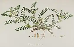 Листья 5—17 см длиной, с 6—13 парами листочков.