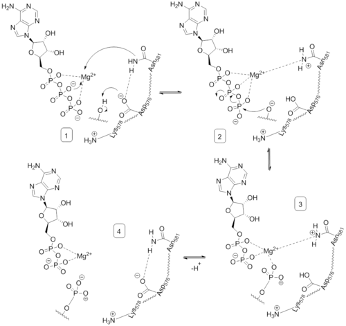 Этап 3. Комплекс с Mg распадается и D576 депротонируется.