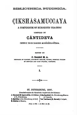 Издание «Bibliotheca Buddhica» началось с публикации памятника буддийской литературы «Cikshasamuccaya» (рус. Шикшасамуччая), которую по просьбе Ольденбурга подготовил английский востоковед Сесил Бендалл. В письме Ольденбургу Бендалл писал: «Мне остаётся лишь выразить чувство благодарности выдающейся Академии, так много сделавшей для исследования Востока, за честь, которую она мне оказала, избрав меня издателем первого тома». Впоследствии ряд томов серии подготовил сам Ольденбург[5].