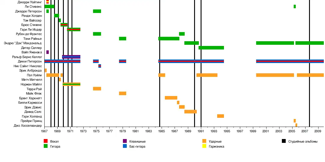 16. Dickie Peterson dies at 63; bassist and lead singer for the power trio Blue Cheer Архивная копия от 19 октября 2009 на Wayback Machine Los Angeles Times, October 17, 2009; www.latimes.com.