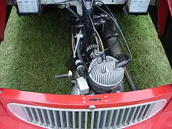 Двигатель — изначально 122-кубовый Villiers 10D (5 л. с.). Подвеску на продольных рычагах имело только переднее колесо, мягкий ход задних обеспечивался упругостью пневматических шин. Рулевое управление осуществлялось при помощи тросового привода, лишь в октябре 1950 он был заменён на рулевой редуктор. Барабанные тормоза имелись только на задней оси.