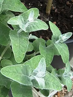 Листья черешковые, черешок часто крылатый, до 4 см длиной. Листовая пластинка тёмно-зелёная с морщинистой, покрытой прожилками поверхностью, яйцевидной или треугольной формы, размерами 1—20 х 0,5—8 см, основание листа в основном округлое или сердцевидное. Цветки лиловые, трубчатой формы с 4 широко выдающимися лопастями. Соцветия терминальные, метельчатые или собраны в кисти, размерами 1—20 х 1—15 см[3].