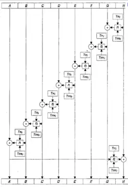 Процедура расширения ключа сложнее чем само шифрование данных. Пусть массив ключей k = (ABCDEFGH) представляющий собой 256-битный блок, где фрагменты A, B,…,H каждый длиной по 32 бита. Пусть «k ← wi(k)», где w() есть функция расширения и представима в следующем виде: