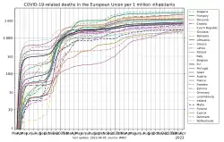 25 марта 2020 года Бельгия заняла 6-е место в списке стран ЕС с наибольшим количеством жертв, а 1 апреля Бельгия вышла на третье место по количеству погибших после Италии и Испании. По состоянию на 3 апреля уровень летальности заболевания COVID-19 в Бельгии аналогичен соседним странам — Нидерландам и Франции, но намного выше, чем в Германии. Однако не все страны считают смертность одинаковым образом[82][83]. Бельгия считает, что случаи смерти происходят как в больницах, так и в других местах, например, в домах престарелых. Смертность с клиническими симптомами коронавирусной болезни считается «подозрительной» и включена в статистику смертей от COVID-19, даже если они не были проверены[84].
