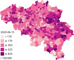 ![]() Карта Бельгии в разрезе количества заражённых | |