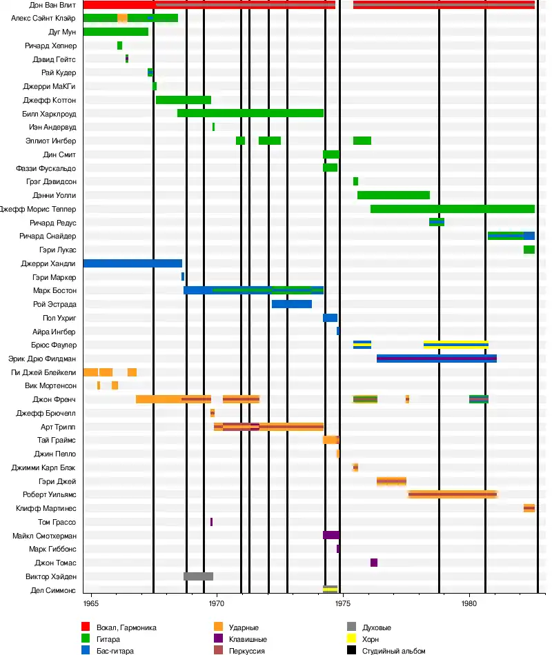 Капитан Бифхарт руководил музыкальным коллективом The Magic Band с середины 1960-х до начала 1980-х годов. Он был фронтменом-вокалистом и играл на губной гармонике, а иногда на саксофоне и клавишных. Альбомы, записанные группой, выпускались под общим названием «Captain Beefheart and the Magic Band» или «Captain Beefheart and his Magic Band». Возможно, самой известной работой Кэптена Бифхарта является альбом 1969 года Trout Mask Replica, спродюсированный другом детства Ван Влиета Фрэнком Заппой. Этот альбом по сей день считается шедевром музыкального сюрреализма и одним из самых своеобразных альбомов в истории рок-музыки[8].