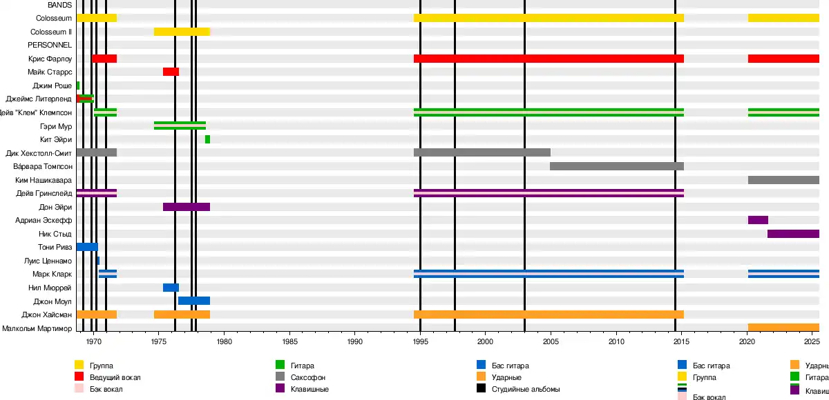 Джон Хайсман Дик Хекстолл-Смит Дэйв Гринслэйд Дэйв Клемпсон Марк Кларк Крис Фарлоу |