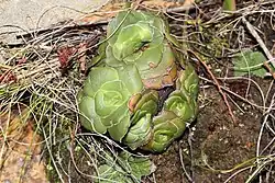 Растения этого вида обитают исключительно на скалах, что делает их недоступными для травоядных животных, таких как черепахи. Этот вид растений, предпочитающих скалы, обладает компактными, плотно прилегающими сочными листьями, которые адаптированы к засушливым условиям. Они растут в мелководной почве, которая периодически высыхает. В период засухи листья приобретают пурпурно-зеленый оттенок из-за наличия антоцианов, что помогает снизить фотосинтез. Голубовато-зеленый цвет листьев объясняется наличием воскового, мучнистого налета, который также помогает уменьшить потерю влаги[1].