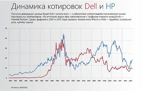 Сравнение динамики котировок акций Dell и HP(1990—2013)