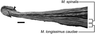- Поперечные отростки третьего крестцового позвонка немного отклоняются вперед и вниз, так, что отверстия между позвоночными рёбрами крестца имеют трапециевидную форму, а не овальную, как у Euoplocephalus.