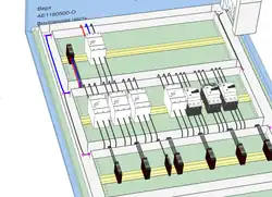 Модуль E3.Panel автоматически определяет допустимость установки изделия на монтажной рейке заданного типа. В процессе компоновки система автоматически подсвечивает на чертеже все рейки и изделия, на которых допускается установка выбранного изделия. При этом процесс установки изделия на рейку выполняется простым переносом конструктивного образа изделия из проекта. Размещение клемм на монтажной рейке выполняется путём выбора всей клеммной колодки и автоматического размещения клемм на рейке в пакетном режиме.