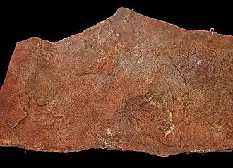 Ediacaria (лат.) — ископаемый род, относящийся к эдиакарскому периоду неопротерозойской эры. В отличие от большей части эдиакарской биоты, которая почти полностью исчезла из летописи окаменелостей в конце периода, окаменелости Ediacaria были обнаружены в период от байкальского возраста (850—650 млн лет назад) верхнего рифея[3] до 501 млн лет назад. в кембрийский период. Ediacaria состоит из концентрических шероховатых кругов, радиальных линий между кругами и центрального купола диаметром от 1 до 70 см.