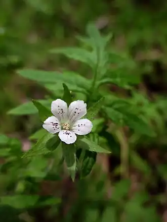 Цветки маленькие, размером около 6 мм, сидят на тонких и коротких черешках, размещающихся в листовых пазух. Каждый цветок имеет пять белых или светло-голубых лепестков, сросшихся у основания и формирующих трубку; лепестки могут быть усеяны пятнами фиолетового цвета.