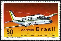 Embraer EMB 110 Bandeirante на почтовой марке Бразилии 1969 годаEMB 110B — версия для аэрофотосъемки. Построено семь, шесть как R-95 для ВВС Бразилии[2].