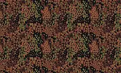 Рисунок «горошка» включал четыре цвета: светло-коричневый, темно-коричневый, зеленый и черный, расположенные как маленькие точки, усеянные большими нерегулярными областями.