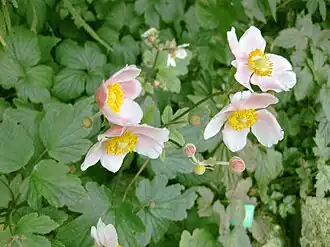 - 'September Charm', 1932. Некоторые авторы считают, что данный сорт имеет гибридное происхождение (Anemone ×hybrida 'September Charm'). Сорт создан в Англии[5]. Высота растений от 60 см до 120 см, ширина около 45 см. Цветки бледно-розовые. Кислотность почвы от 5,5 до 7,5 pH. Зоны морозостойкости 4—8[9], согласно другому источнику: 5a—8b[10].