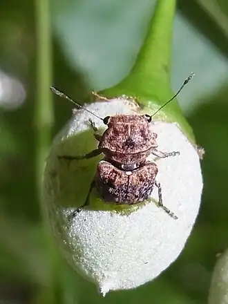 - ↑ Yoshitake H, Kawashima I (2004) Sexual Dimorphism and Agonistic Behavior of Exechesops Leucopis (Jordan) (Coleoptera: Anthribidae: Anthribinae). Coleopt Bull 58:77-83. https://doi.org/10.1649/605