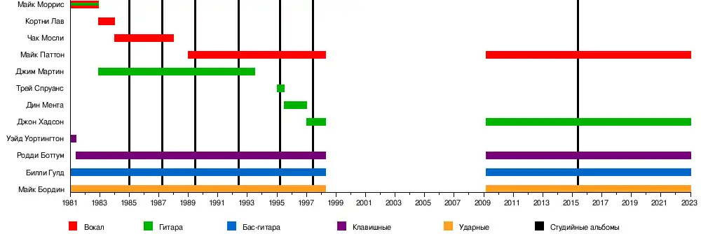 - Майк Паттон — вокал (1988—1998, 2009—наши дни)