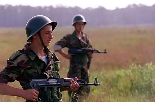 Албанские солдаты в касках GK80
