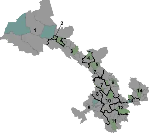 | 9 | Ганьнань-Тибетский АО | 甘南藏族自治州 | Gānnán Zāngzú zìzhìzhōu | Автономный округ | |