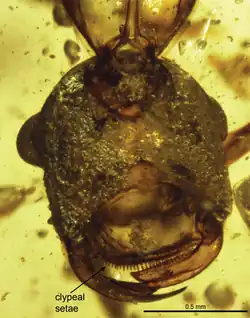 - ↑ Boudinot BE, Khouri Z, Richter A, Van de Kamp T, Barden P, Perrichot V, Chaul JCM. 2020a. Chapter II. The evolution of the ants: extinct ant sister-group illuminates eusociality origin and post-K/Pg persistence. In: Boudinot BE, Systematic and evolutionary morphology: case studies on Formicidae, Mesozoic Aculeata, and hexapodan genitalia. Ph. D. Thesis, University of California, Davis, 174—393.